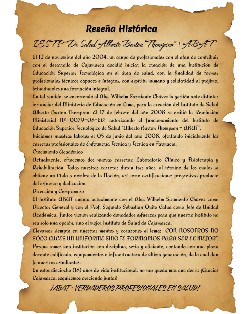 RESEÑA HISTÓRICA El 12 de noviembre del año 2004, un grupo de profesionales entre con el afán de contribuir con el desarrollo de Cajamarca; decidiendo para ello, iniciar la creación de una Institución de Educación Superior Tecnológica en el Área de Salud, con la finalidad de forjar Profesionales Técnicos capaces e íntegros y sobre todo […]